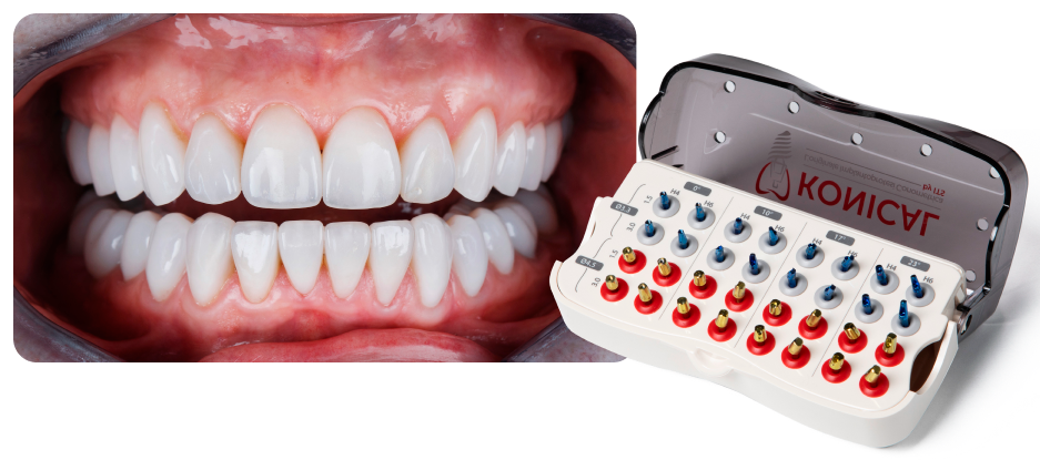 O.Ti.A. riproduce inoltre una ritenzione conica pura a livello protesico in totale assenza di viti e cemento, per la ricostruzione in studio o indiretta di zone limitate dai denti e di zone libere con corone e ponti singoli.